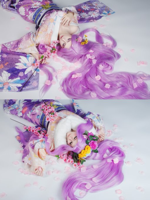 На некоторых совместных фото с @Renton_Torston мы выглядим, не как один и тот же перс, а как мама и ребёнок, который пытается косить под неё :D❤️ Мама: *лежит c веточкой сакуры красивая, как богиня* Я: *обкорнала сакуру, облопалась вишни и спит* #FateGrandOrder #Medusa #cosplay