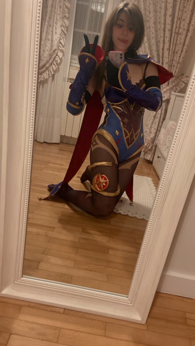 Monita , lo tengo completo pero es un rollo ponermelo 🤭 ya pensaré en que conve usarlo #Genshinlmpact #monagenshin #monacosplay #cosplay