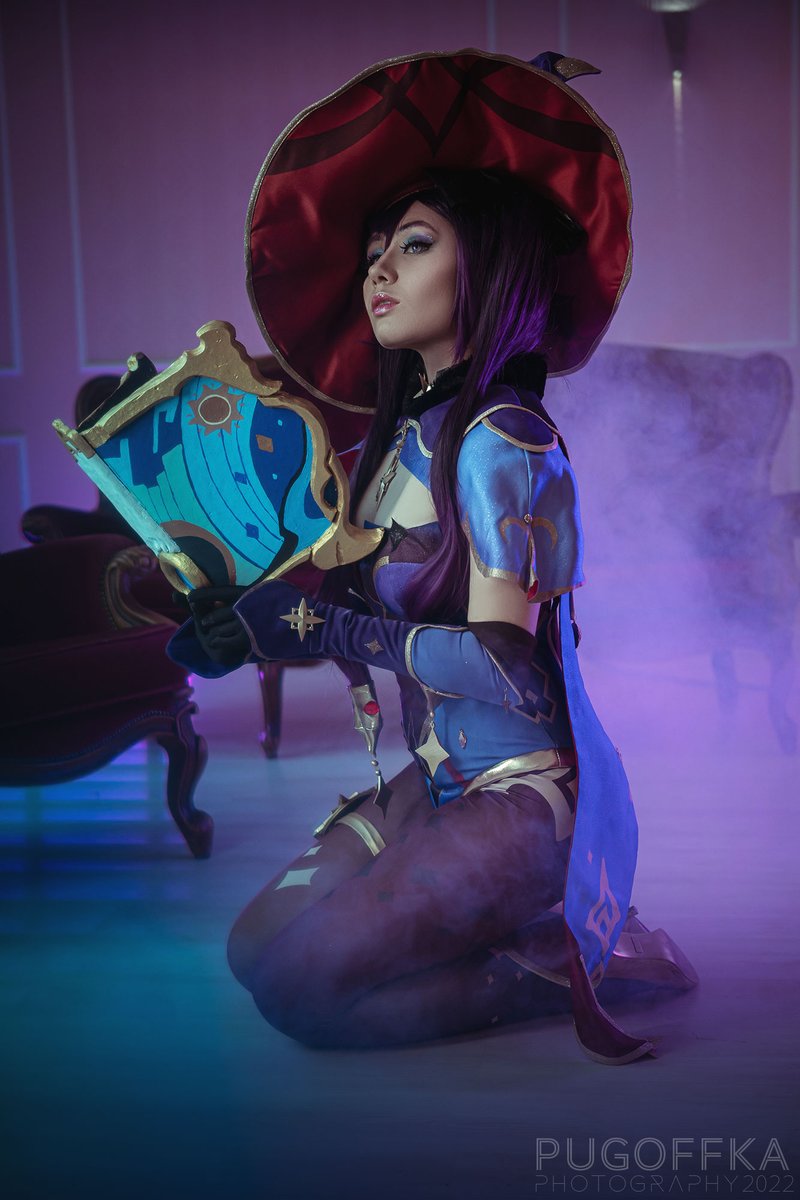 I am Astrologist Mona Megistus, meaning "The Great Astrologist Mona." ✨😩 Stunning pictures of me as Mona by @PugoffkaSama 💕 #cosplay #mona #monagenshin #monacosplay #monamegistus @CosplayInfin @GenshinImpact @genshinimpactkr @genshinimpacttw @Genshin_7