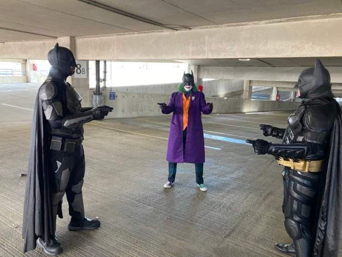 Happy #Tuesday here is another great shot with @cosplay_chris at @halcon_scificon this past Saturday! #SpiderMan #Batman #Marvel #DC #Cosplay #Crossover #Multiverse #SpiderVerse #halcon2022 🤘🏻