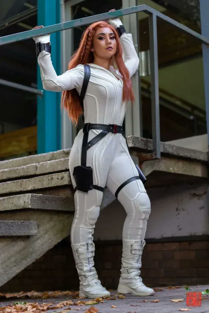 "It's funny. My whole life, I didn't think I had any family. Turns out I got two." Natasha Romanoff (White Suit) / #BlackWidow Cosplay by @Wolfy_Cosplay Photos by @FoodAndCosplay Taken at @meanwhile2021 #BlackWidow #natasharomanoff #marvel #cosplay #natasharomanoffcosplay