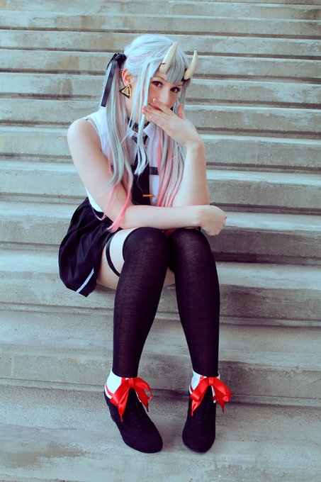 Here is some cuteness for this week! 😆 With my Nakiri Ayame cosplay from Hololive! 📸 Apocosplay (insta) ✂️ horns and accessories made by me #nakiriayame #百鬼絵巻 #cosplay #hololive #ホロライブ #hololivecosplay