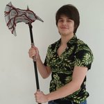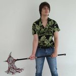 Machado do Balu finalizado. Tiramos algumas fotos para mostrar. Camisa estilosa que nem as do Balu mesmo. Feita em madeira e E.V.A. Espero que goste, @Calango #Calamidade #OrdemParanormalCalamidade #cosplay #OrdemParanormal