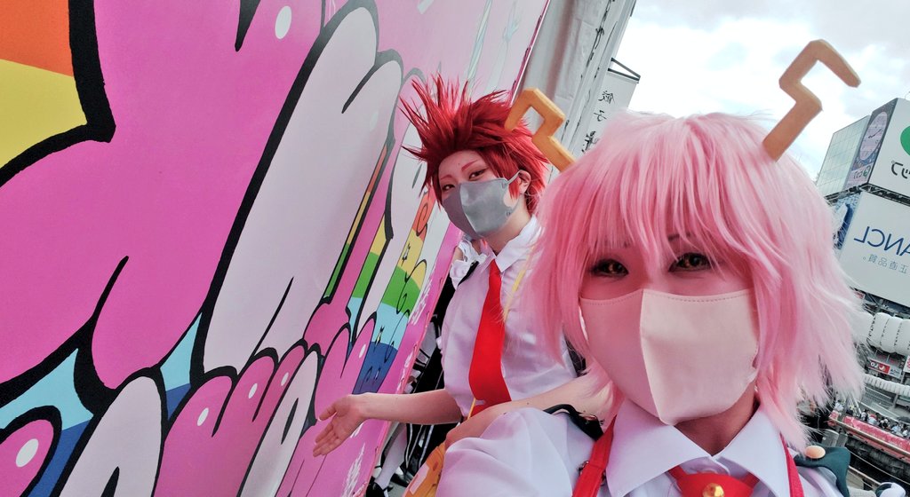 めちゃめちゃ可愛いカフェ行ってきました〜! 店内も店員さんもスイーツも全部可愛かったです!!あとなんといってもピンク!!!ピンクといえばあしみなでしょう︎💕︎ 男前切島は、似合わなすぎて逆に可愛かった #PINKKAWAII #道頓堀コスプレ祭 #アコスタ道頓堀