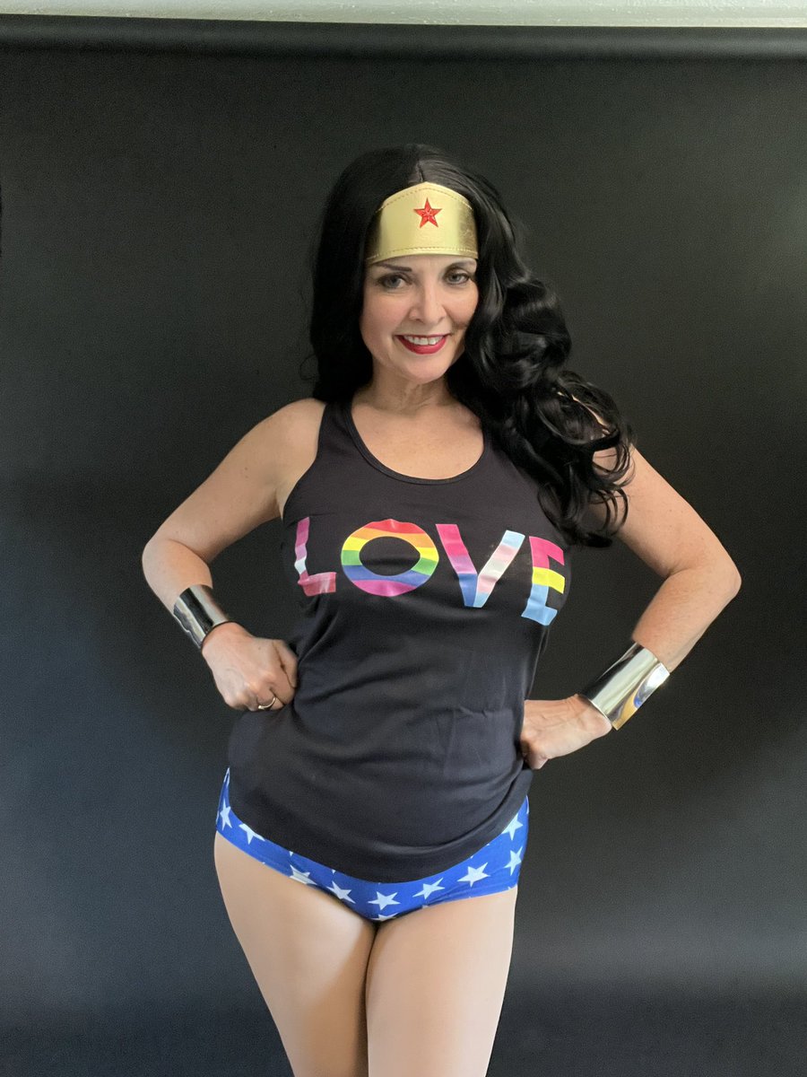 Happy #wonderwomanwednesday! I never shared my handful of Pride #Wondie pix with you. Probably because Harley stole the tank top. 😄 I do plan to do a full #Pride #WonderWoman with the rainbow corset for next June. #cosplay #a2miwonderwoman #dccomics #amhcosplays #cosplayer