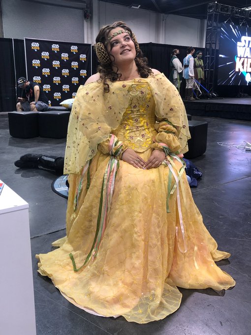 Breaking up all the Village shoot pix with some happy Padme because Star Wars brainrot is never-ending. 💛🌸💜 Photo by my Ani @TazunayHitori 😘 My cane was also painted by them! #padme #StarWars #disabilityinclusion