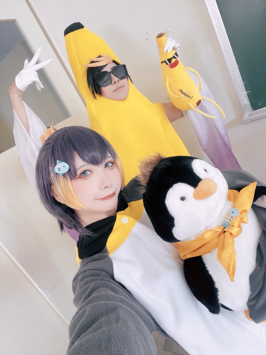 penguin&penguin!!!🐧🐧 ...banana?? #NIJISANJI_EN #PetraGurin #ShuYamino #CosPetra #Cospleyy #PetraArt #YaminoArt