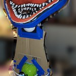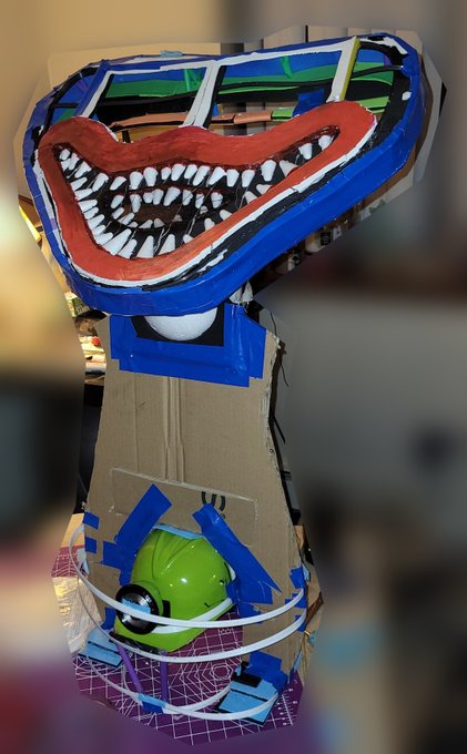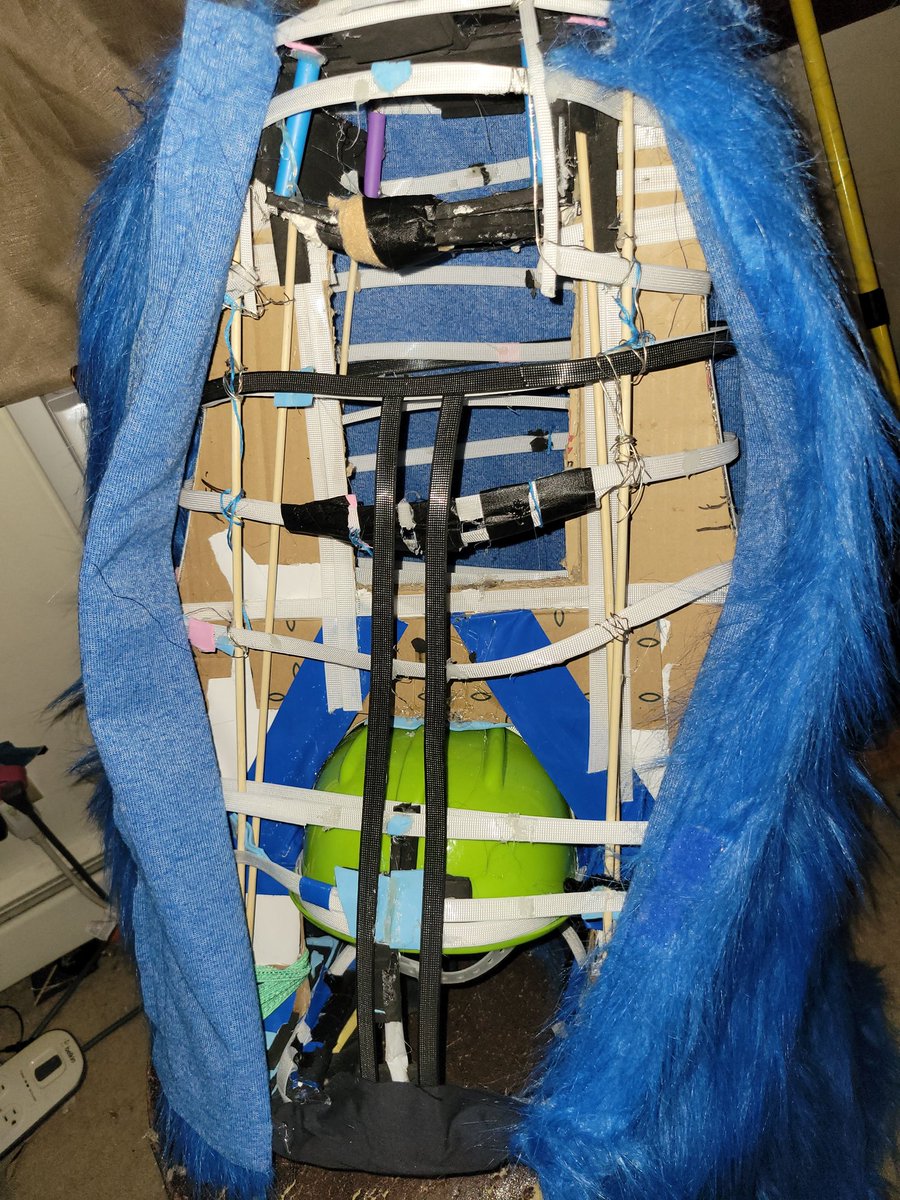 So this is how Huggy's body is built. It's a cardboard center to make the core shape, ringed with sew-on boning. Attaches to a helmet so I can wear him, but I'm thinking a marching band drum holster might have worked better. #huggywuggy #poppyplaytime #cosplay