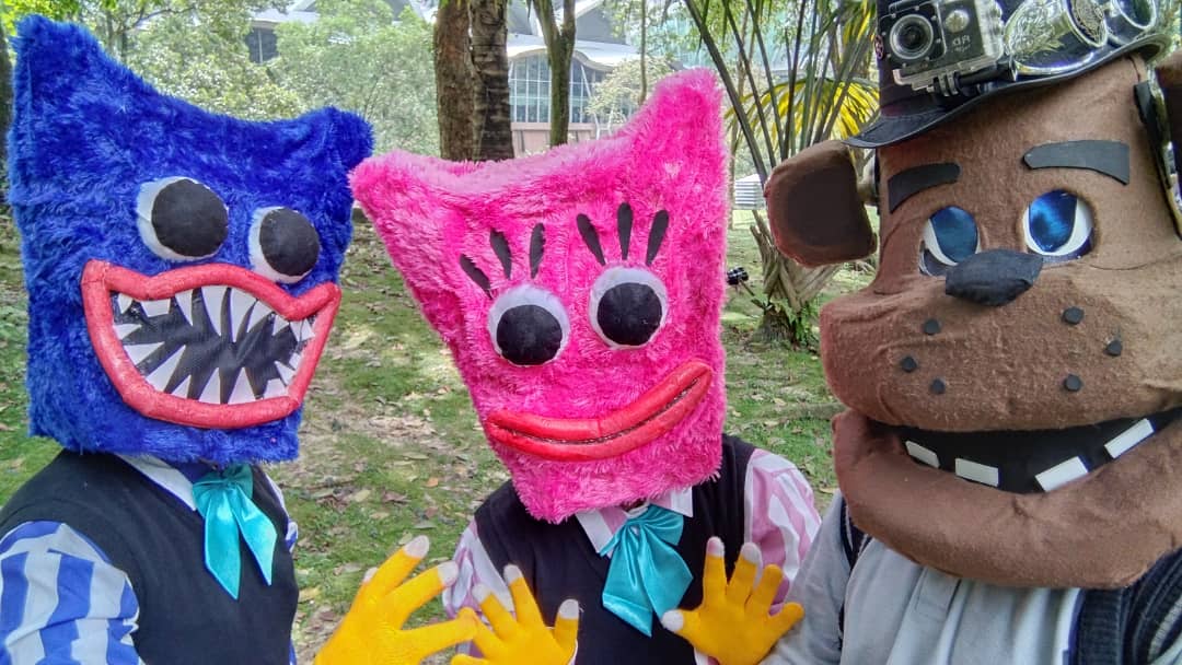 #comicfiesta2022 Me cosplay as Huggy Me lil sis as Kissy Me best fren as Freddy Fazbear. Day 1 n 2 Its was fun tho uwu #PoppyPlaytime #FNAF #cosplay #comicfiesta22 #huggywuggy #kissymissy #freddyfazbear