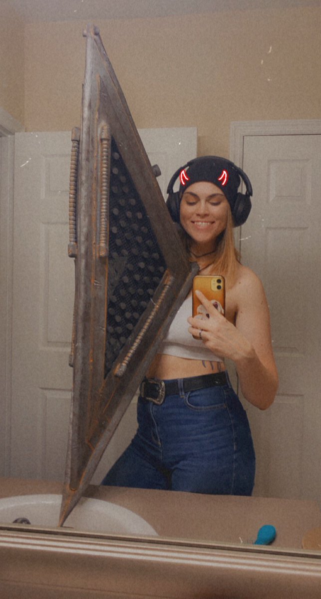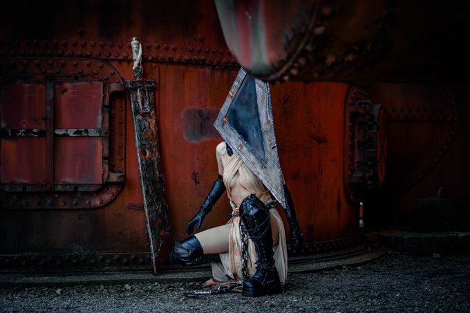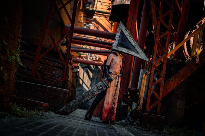 If you see this, drop a photo/video of yourself as a villain 🔺🗡️ . . . . #silenthill #pyramidhead #silenthillcosplay #horrorgame #cosplaygirl #photoshop twitter.com/FreckleHime/st…