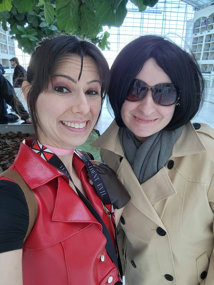 Claire met Ada too at #Katsucon! 🤩 ❤️CVX Claire - me ❤️RE2R Ada (with and without the coat) - @ShadowBoxerPlay #ResidentEvil #ClaireRedfield #AdaWong #REBHfun #REBH26th #REBH27th #Katuscon2023