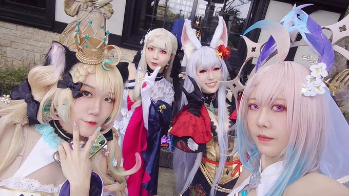 🎰: Hiri 👻🎼 :一祚 🪄:玄 🕊️🎐:悠葉 攝 / mihako #nijisanjien #nijisanji #Ninakosaka #drawkosaka #kosaplay #millieparfait #ReimuEndou #EnnaAlouette #Ethyria #cosplay