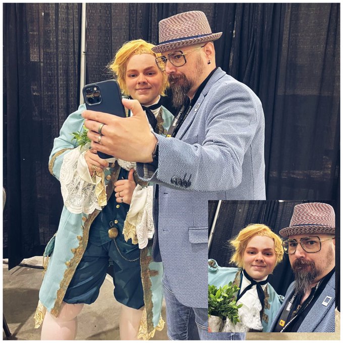 Hank’s favourite part @saskexpoyxe is revelling with famous Pirates. Meeting #StedeBonnet from #OurFlagMeansDeath was a dream come true. 🏴☠️ #yxe #saskexpo #SaskFANdemonium #RhysDarby #cosplay