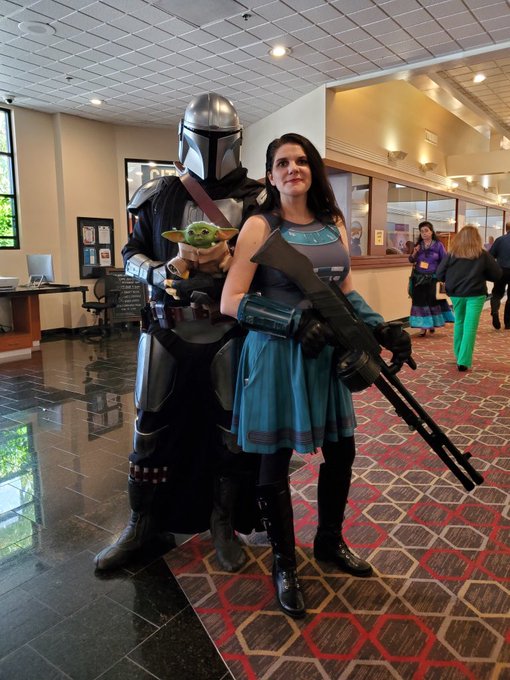 This is the way. @cofphoto prepares to take the stand with @thelegalgeeks at @sdcomicfest #SDComicFest #Cosplay #StarWars