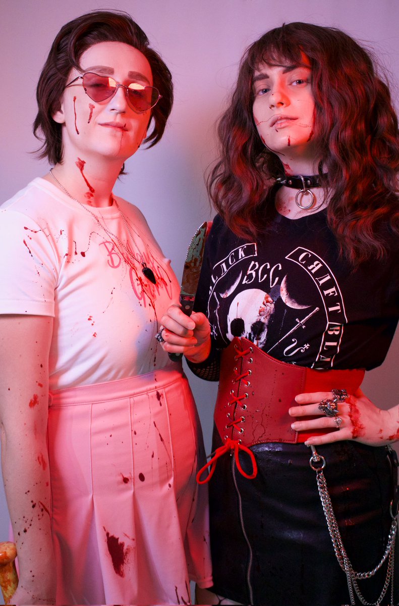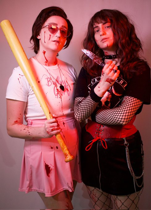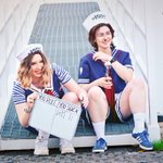 Here's some cosplays we did for Halloween, based off the amazing fanart by @babysitterpng! ✨️ We had so much fun with these. 😁 Steve is @Justybeann #steddie #strangerthings #steveharrington #EddieMunson #cosplay