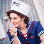 "Oh, dude. Come on, man, not my scooper." Happy birthday to @JamieFisher16 🎉 #StrangerThings #SteveHarrington #DustinHenderson #Cosplay