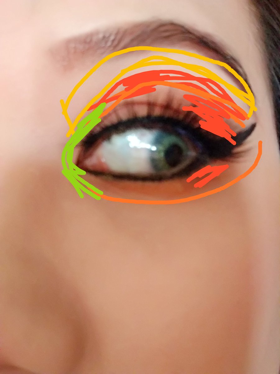 twitter.com/yukihime031/st… #cosplay #cosplayer #setokaiba How to make your eyes cool& sharp like Seto Kaiba. 1. Yellow line = matte white eyeshadow 2. orange line = matte dark brown eyeshadow 3. Green line = white shimmery eyeshadow 4. Light orange line = coral eyeshadow