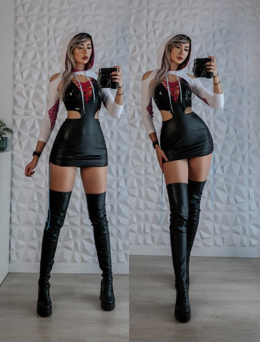 🕸️Gwen and Miles are back!🕸️ Best boy: @Blue_Violence 🕷️ Best ph: @miadema_cosplay Gwen: me #SpiderManAcrossTheSpiderVerse #SpiderManIntoTheSpiderVerse #GwenStacy #MilesMorales @SpiderVerse #GwenStacycosplay