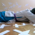 I also shot this along with the other 2. I didn't have a dragon, but I wanted to shoot Haku in human form attacked by all these paper men/birds/spells. Also, pardon me. I have since cut the wig better and made my cosplay better /peace/ #Spiritedaway #haku #cosplay