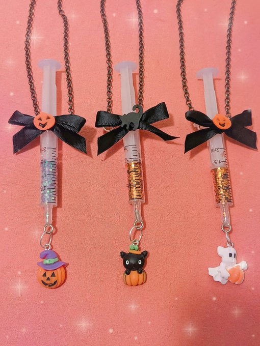My new syringe necklaces for spooky season might be the cutest I've ever made! 💀🎃🖤💉 If you'd like one they're $20 each. I accept PayPal. I also do trades! 🖤 #Halloween2022 #Spooktober #spooky