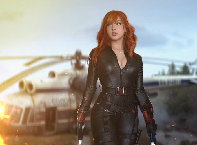 Cosplay @missbrisolo Art @agent_4151. @Marvel @Kevfeige @theblackwidow #Marvel #MarvelStudios #MCU #BlackWidow #superhero #cosplay #ScarlettJohansson #spy @rob_keyes #fire #ashesofflames #art #helicopters #model #girl