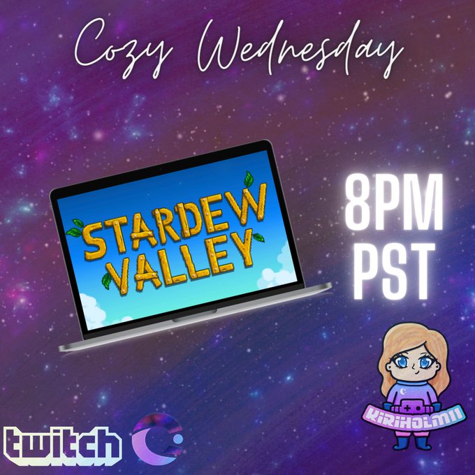 Did you guys miss #CozyWednesday ? I know I sure have! I'll be playing some #StardewValley tonight, come by for some chill vibes. Don't forget we have a channel point challenge going for another #cosplay stream! 8pm pst <3