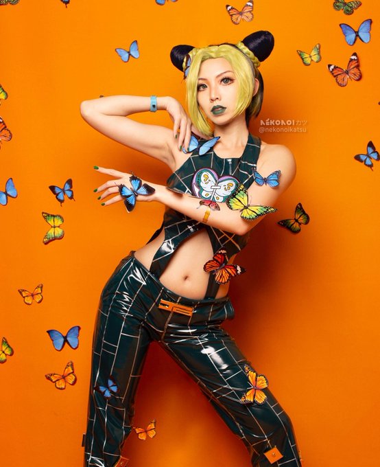 So I wanted to show more pictures....🦋 📸: @allyspock Wig: @omgitsbarri Costume made entirely by me #JoJosBizarreAdventure #stoneocean #cosplayer