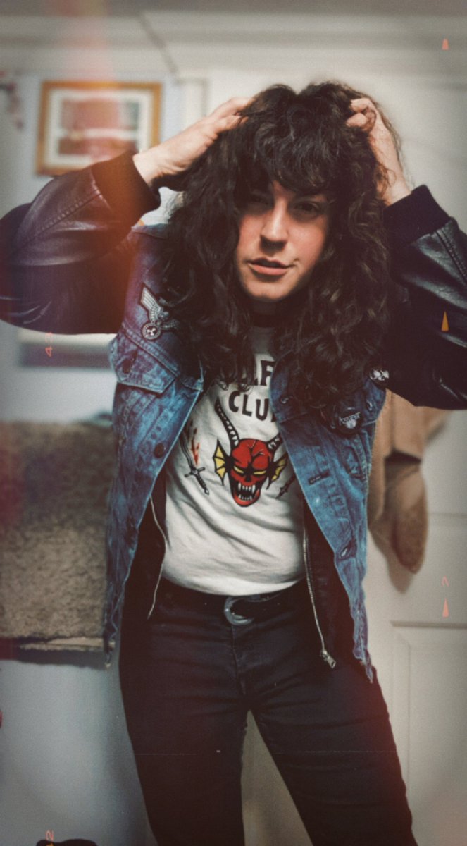"Don't worry, I'm gonna play something better than Wonderwall" Chrissy Cunningham: me Eddie Munson: @callme_trinity Photo @ashlenone #cosplay #StrangerThings #eddiemunson #HellCheer
