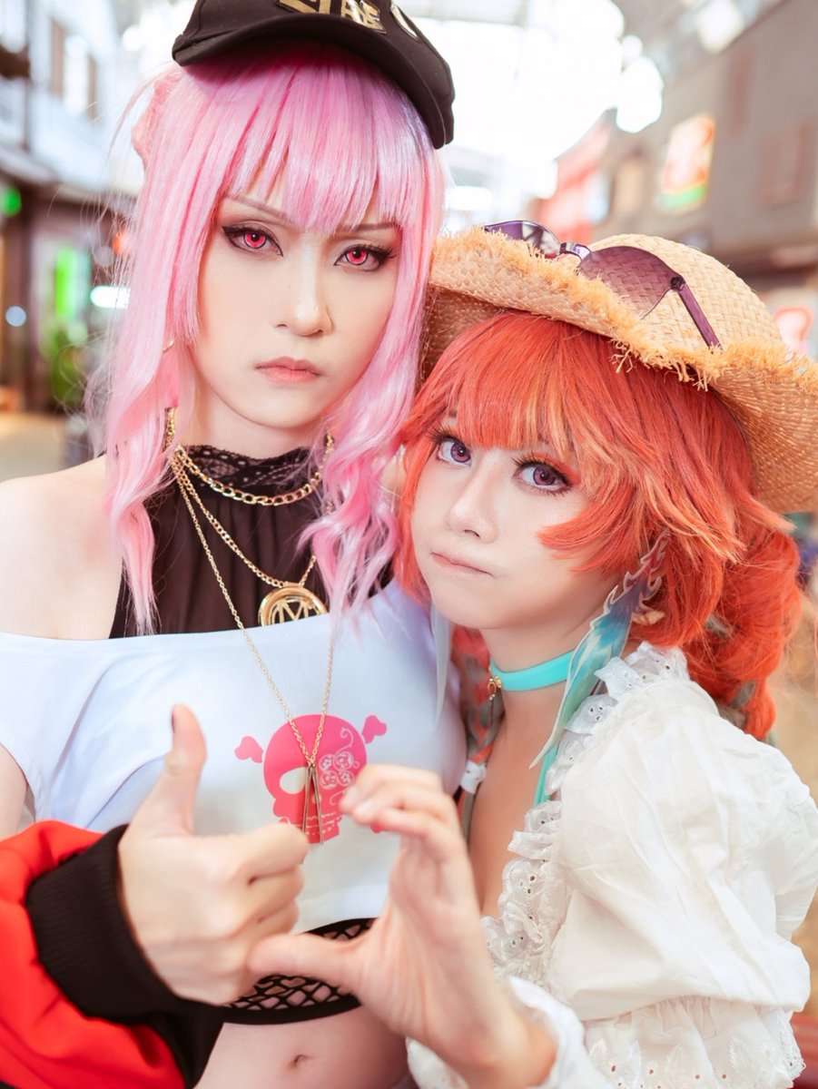 TakaMori💕 Kiara Takanashi:@lian990612 Mori Calliope:@tsumi0612 Really really happy to see them again together!! TakeMori is lovely ❤️🧡 I’m looking forward to enjoy their karaoke tomorrow 🥺 #HololiveEN #cosplay #コスプレ #kfp #ArtsOfAshes #callillust #TakaMori