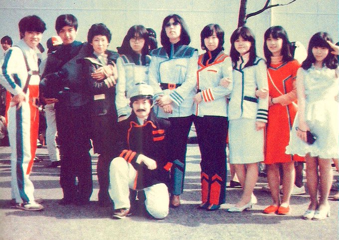 #ThrowbackThursday Imagen en la que vemos a un grupo de de fans disfrazados, durante un evento en 1983. Foto del libro Best Hit Series: Macross Graffiti del 1983, en la se que se referían a esta práctica como "The Costume Play" #Tendencias #Anime #Macross #Otaku #Cosplay