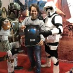 Recuerdos 2019; Foto en el salón del comic de Barcelona'19, entregando un calendario de mis trabajos fotográficos para el sorteo benéfico de los amigos de la asociación @StarProps #starwars #TheBookOfBobaFett #StarWarsCelebration #StarWarsGOATS #starwarsblackseries #cosplay