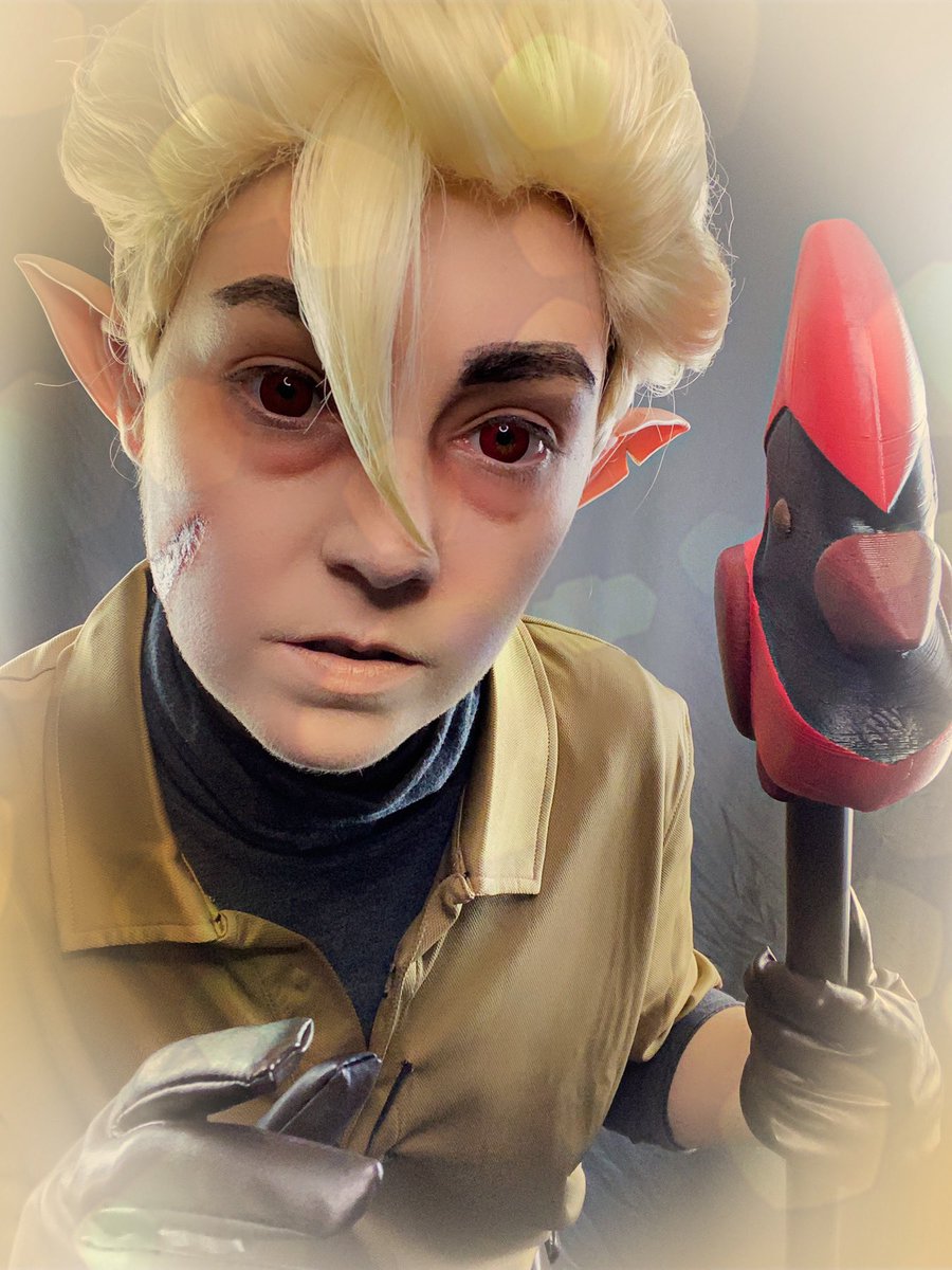 Why isn’t there a cardinal emoji? This is a personal attack wig: @ardawigs Kyle classic in titanium blonde styled by me |contacts: @myeyebb_official code COSMERCOSPLAY #hunter #huntercosplay #cosplay #cosplayer #theowlhouse #toh #theowlhousecosplay #tohcosplay #theowlhousehunter