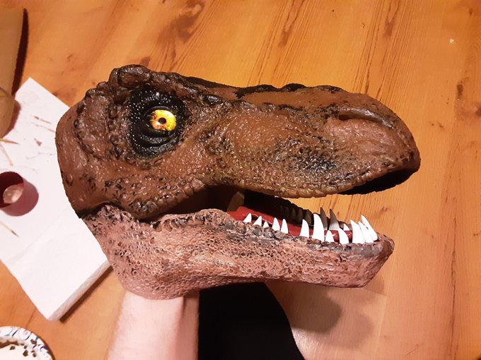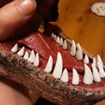 Well the bottom jaw is repainted, and I just finished gluing in the teeth and tongue that I resculpted for my #Trex now I just need to sculpt those 26 upper teeth I've been putting off! #Dinosaurs #Cosplay