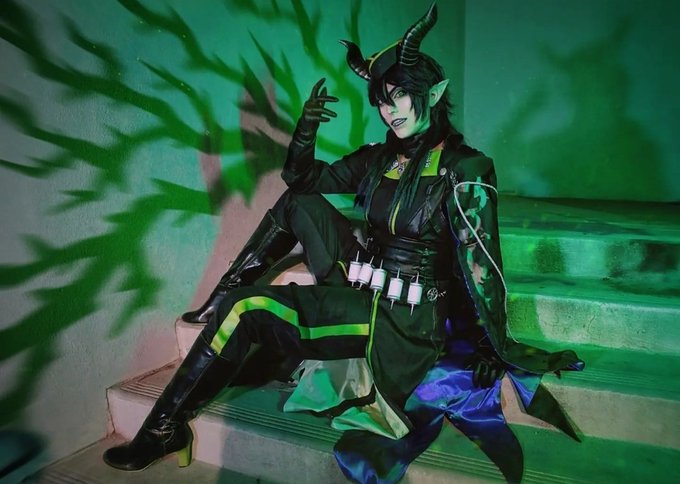 MALLEUS DRACONIA 🐲 One of my dream cosplays for 3 years now. So happy I finally got to wear it! 💚 #twst #コスプレ #cosplay #twistedwonderland #MalleusDraconia #マレウスドラコニア
