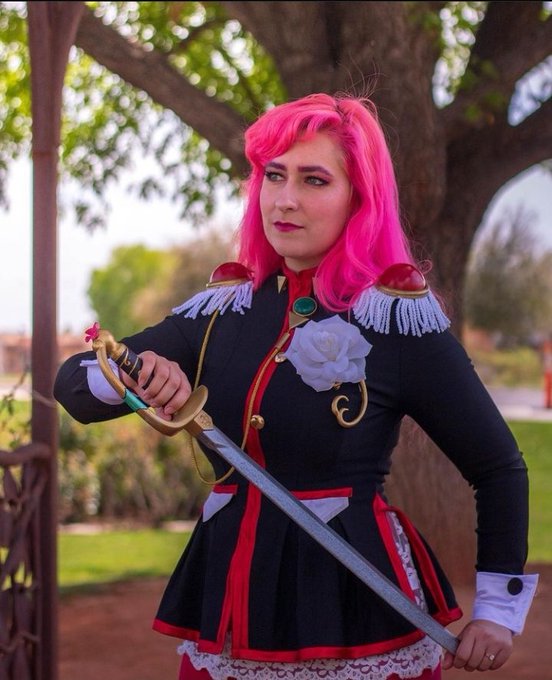Aunque el cosplay de #Utena se quedó a la mitad, las cosas importantes si las pude hacer, la espada, las hombreras y el traje 💖 Me siento muy satisfecha de haber hecho cosplay de un personaje que amo tanto ✨🌹 el caballero de la rosa #UtenaCosplay #cosplay #concomics