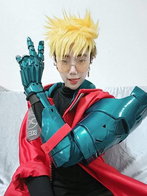 Vash costest but I'm not 100% happy with the wig and the make up. I will try some other things next time✨ But finally #vash #TRIGUNSTAMPEDE #TRIGUNイラコン