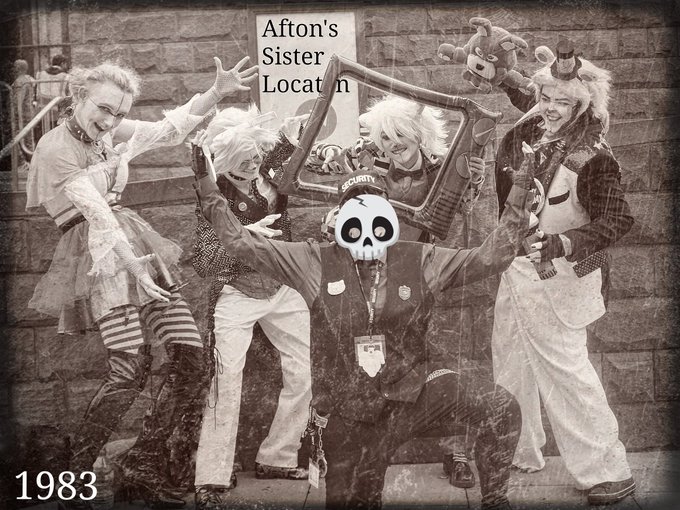 I HAVE NO ART BUT HAPPY 8 YEARS #FNAF #fivenightsatfreddys I edited another professional photo from the meet and I hope you like it Without, I wouldn't even be an animator or meet these people like @kwok_sama_ and @StrawberryFizz4 I owe this game everything #cosplay #Williamafton