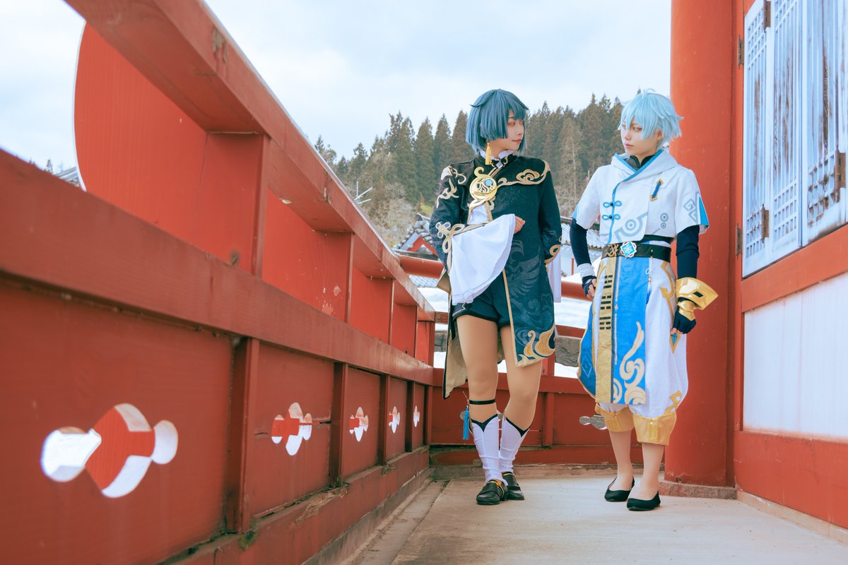 【 cos 】 原神 ︎︎ ︎︎ 親友 ----------------------------- #GenshinImpact #Xingqiu #Chongyun 重雲:レインさん 行秋:あまね Photo📸にこさん