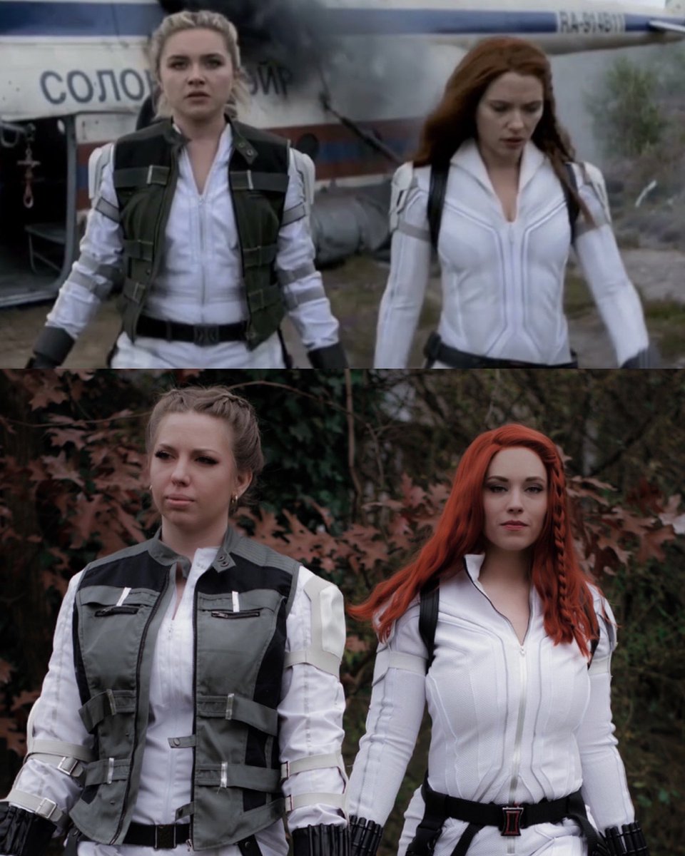 A little side by side of our Yelena and Natasha! 👯♀️ Natasha: @Samurai_Jill_ Yelena: @SarahSpectre (me!) 📸: @Starlord_Cos #BlackWidow #cosplay #YelenaBelova #Hawkeye #yelena