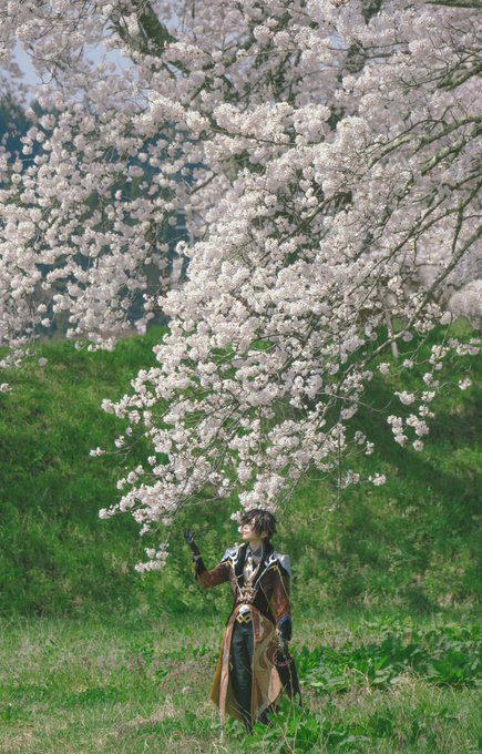 Cosplay / コスプレ 原神 鍾離 花と酒を手に景色を堪能しようとしたが あの頃とはもう違う 旧友とまた… photo : @_nanase_cos #Genshinlmpact #zhongli