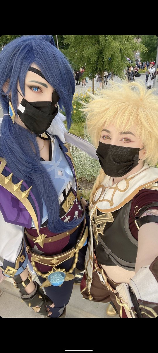 Kaeya and Aetherrrr 😭😭😭 We're so CUTE. Aether is @teacupmermaid #Genshinlmpact #Kaeya #KaeyaAlberich #aethergenshin #cosplay