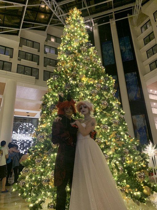 Me and my boyfriend and our dumb little radiodust shenanigans🖤 • #radiodust #cosplay #cosplaycouple #angeldust #alastor #hazbinhotel #HolMat2022 #holidaymatsuri #ship #couplecosplay