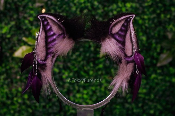 🔮🦇𝚈𝚎𝚗𝚗𝚒𝚏𝚎𝚛🦇🔮 • Available at; FoxxyFurends.com • I’m obsessed with these earsies, feathers flowing with movement and Yennifer pallet, they’re a Witcher statement piece! Fully possible, airbrushed! • #witcher #witcheroc #animalears #cosplay #ears