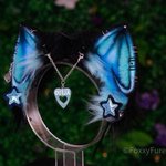 ⭐️💙Starry Ouija Wolf💙⭐️!! OOAK and looking for a home at FoxxyFurends.com!! • Handmade with love! Stars are removable/wearable squishy clips!! EEEE so cute! • #cosplay #cosplayears #animalears #otaku #furry #wearableart #cosplayears #ears #furryears