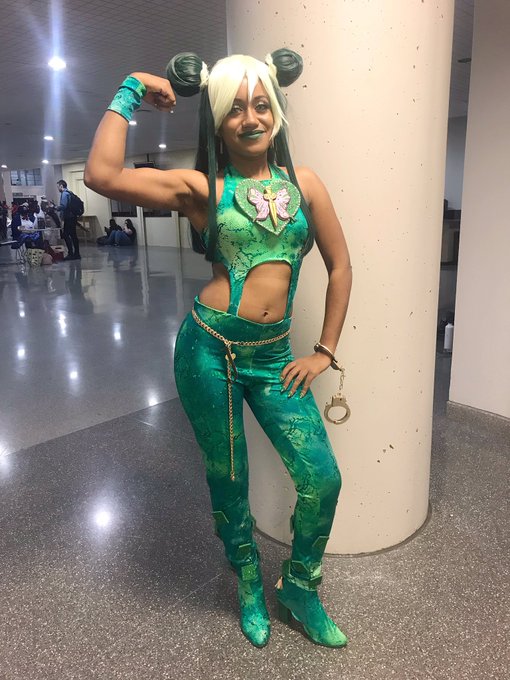 Felt so good to cosplay again, especially as best girl! I’m already thinking of what color scheme to do next ✨💚🦋💚✨#animenyc #jolynekujo #jolynekujocosplay #stoneocean