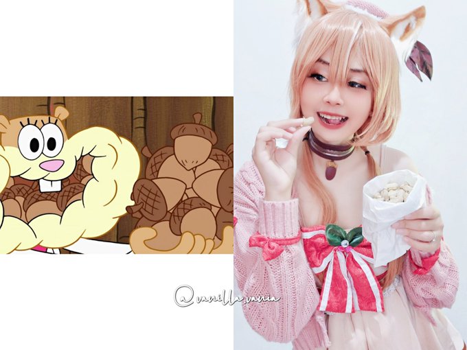 Spot the difference 🤣🤣🤣 Happy Sunday 🥜 Me as @ayunda_risu #Gambarisu #hololivecosplay #Ayundarisu #Vtuber #cosplay #ayundarisucosplay #risu_meme