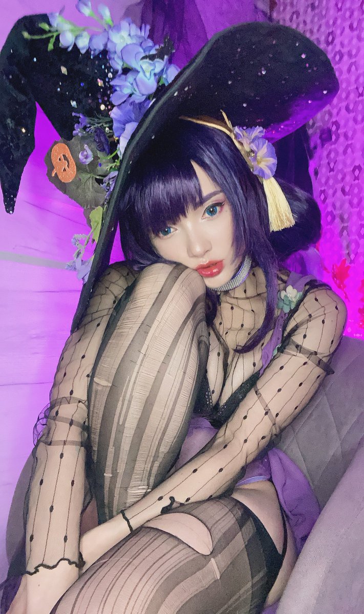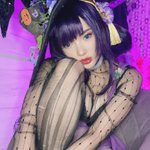 The halloween version of Baal seems to be very hot 🎃 🔥 💜 Please, stay in touch, this sweet pumpkin will appear in your feed again so soon 💜 #Baal #BaalCosplay #GenshinImapct #Raiden