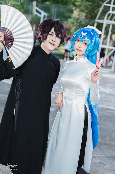 They're so cuteeeeeeee 😭💜💙 @Miew_666 and her friend cosplay based on my Shoto and Bao áo dài drawing 😭🙏💜💙 #ArtoftheRogue #baort twitter.com/rillia_rei/s…