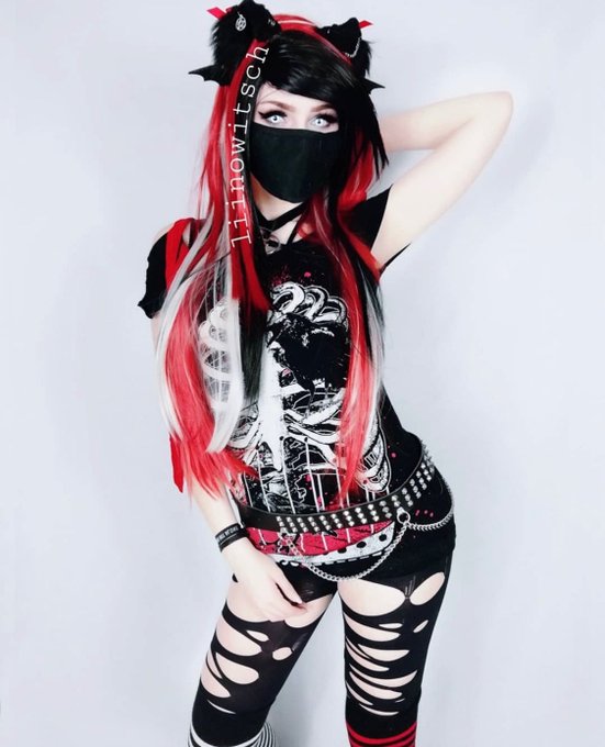 „Hello peopleee❤️ Tell me ur favourite color! Mine is red, black and white!!“ @liinowitsch #egirl #scenegirl #cosplay #cosplaygirl #red #black #white