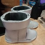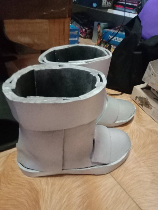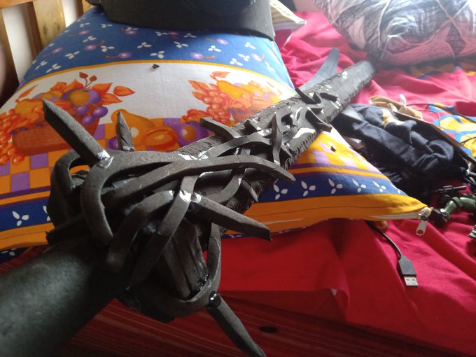 The Penitent One update: Boots and Helmet are painted. Gave a coat of emulsion hours later. Will finish the set while looking for a new job. #cosplay #Blasphemous #ThePenitentOne